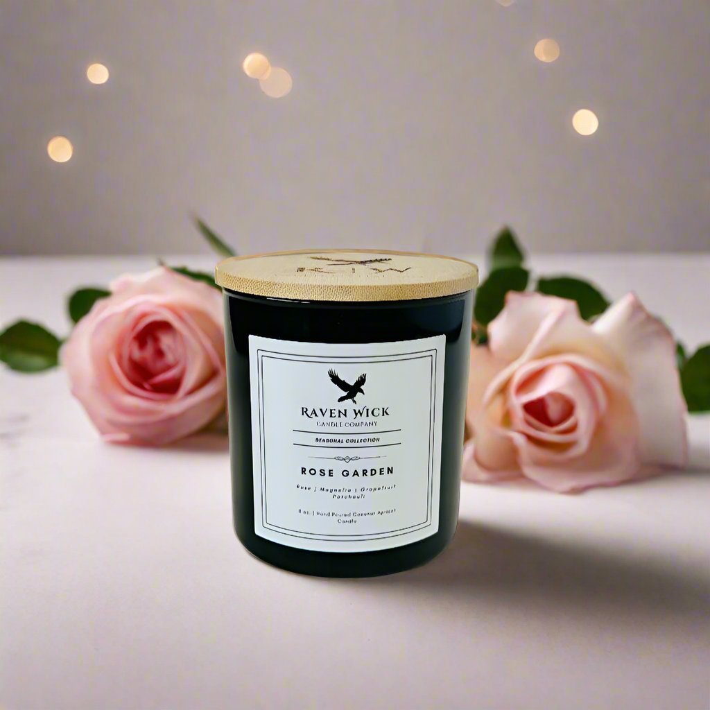 Indulge in the luxurious scent of "Rose Garden". With notes of rose, exotic magnolia, tangy grapefruit, and soothing patchouli, this candle will transport you to a blooming garden. Immerse yourself in its opulent aroma and elevate your senses with this premium candle.